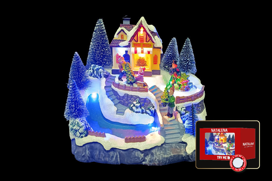 villaggio natalizio con luci musica e movimento